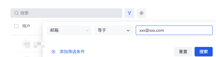 已经确认过有查询条件中的Email,但查不到该用户,图中的xx@xx.com为样例